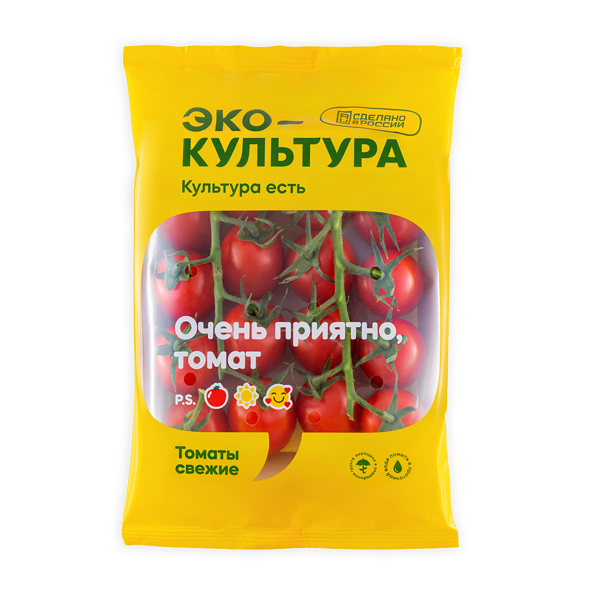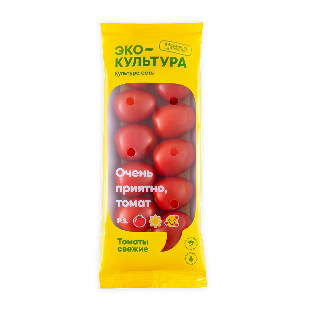These are small plum-shaped fruits of rich red color. They have juicy dense pulp and pronounced taste. They are suitable for cooking all kinds of dishes. Tomatoes are presented in the package as separate fruits and fruits on a branch.
